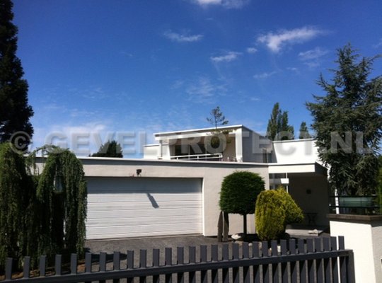 Elk jaar houdt deze familie een grote schoonmaak in en om het huis. Dit jaar wilden ze graag de gevels opfrissen. Het ging hier om een stucwerk gevel (ook wel spachtelputz), die op verschillende plaatsen groene aanslag vertoonde.